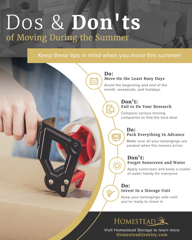 Summer will be here before you know it, and it’s no secret that summer is one of the busiest times of the year for people to move. Whether your lease is up and you’re moving to a new place or you and your spouse are newlyweds and you’re finally moving into your first home, there are a myriad of reasons why people choose to move during the summer. There’s nothing wrong with moving during the summer, especially if you have no choice, but if you don’t do your due diligence, you may find that your experience is not as smooth as it could be. That’s why, in today’s post, we will provide you with some dos and don’ts that you should consider as you start getting closer to your move.
